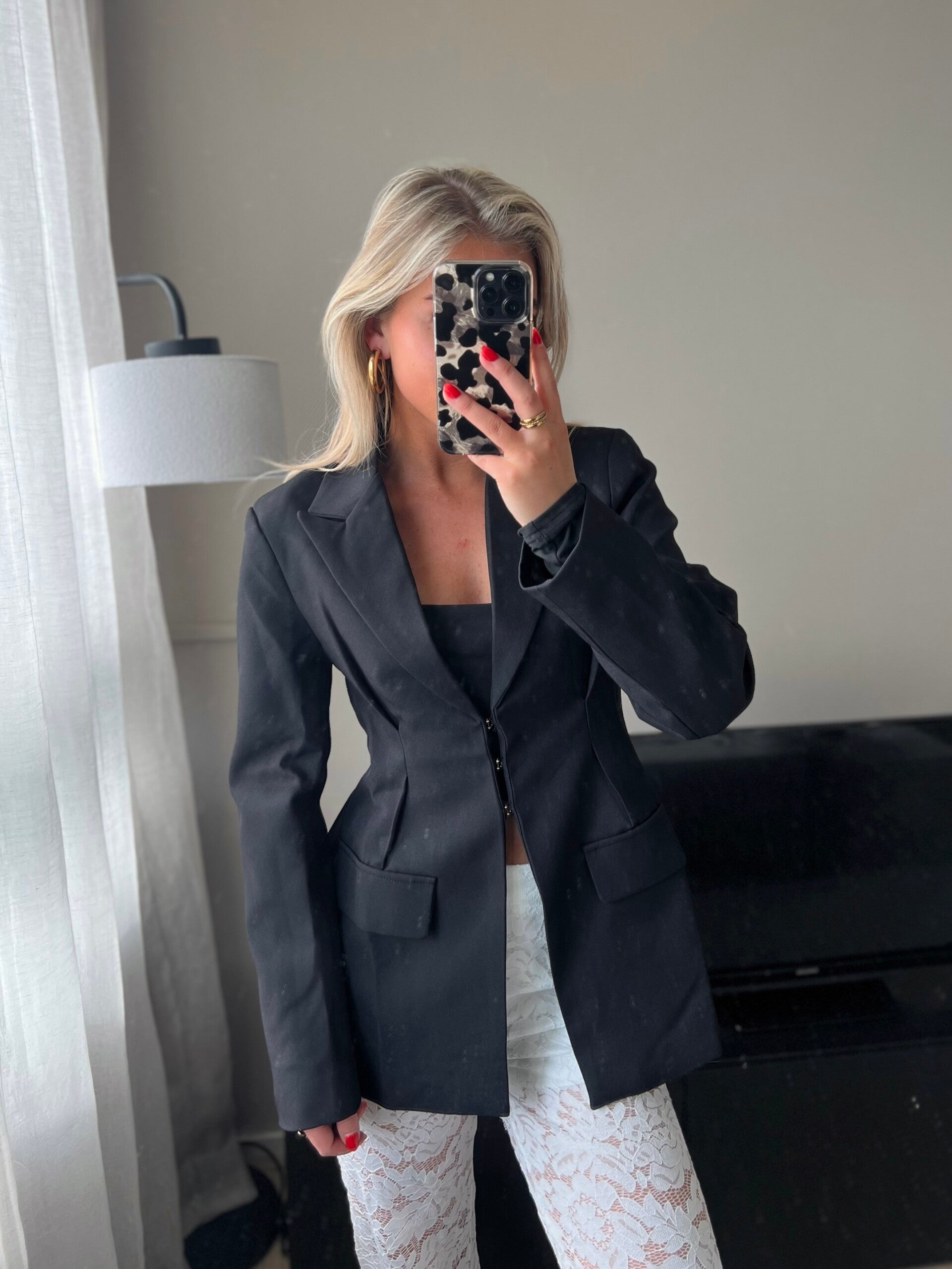 Wauw dit is toch wel echt dé perfecte getailleerde blazer. Je kunt hem sluiten met haakjes. Hij valt een maatje kleiner.