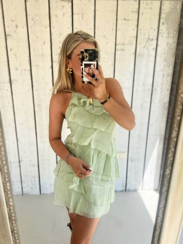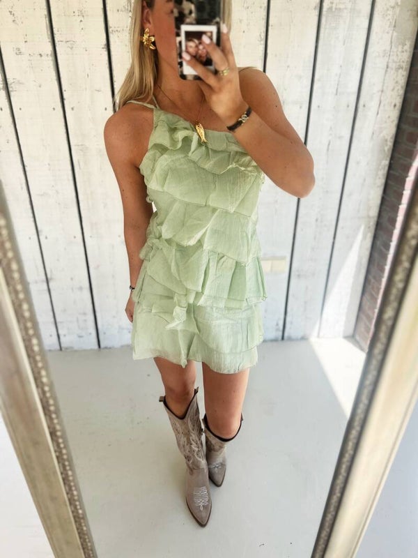Dit jurkje is echt een perfect jurkje voor een chique diner of een feestje. Ook natuurlijk leuk voor vakantie. De jurk valt een halve maat kleiner. Draag je normaal maat XS? Dan is S/M goed te dragen. De bandjes zijn verstelbaar. Het model is 172cm en draagt maat S/M.