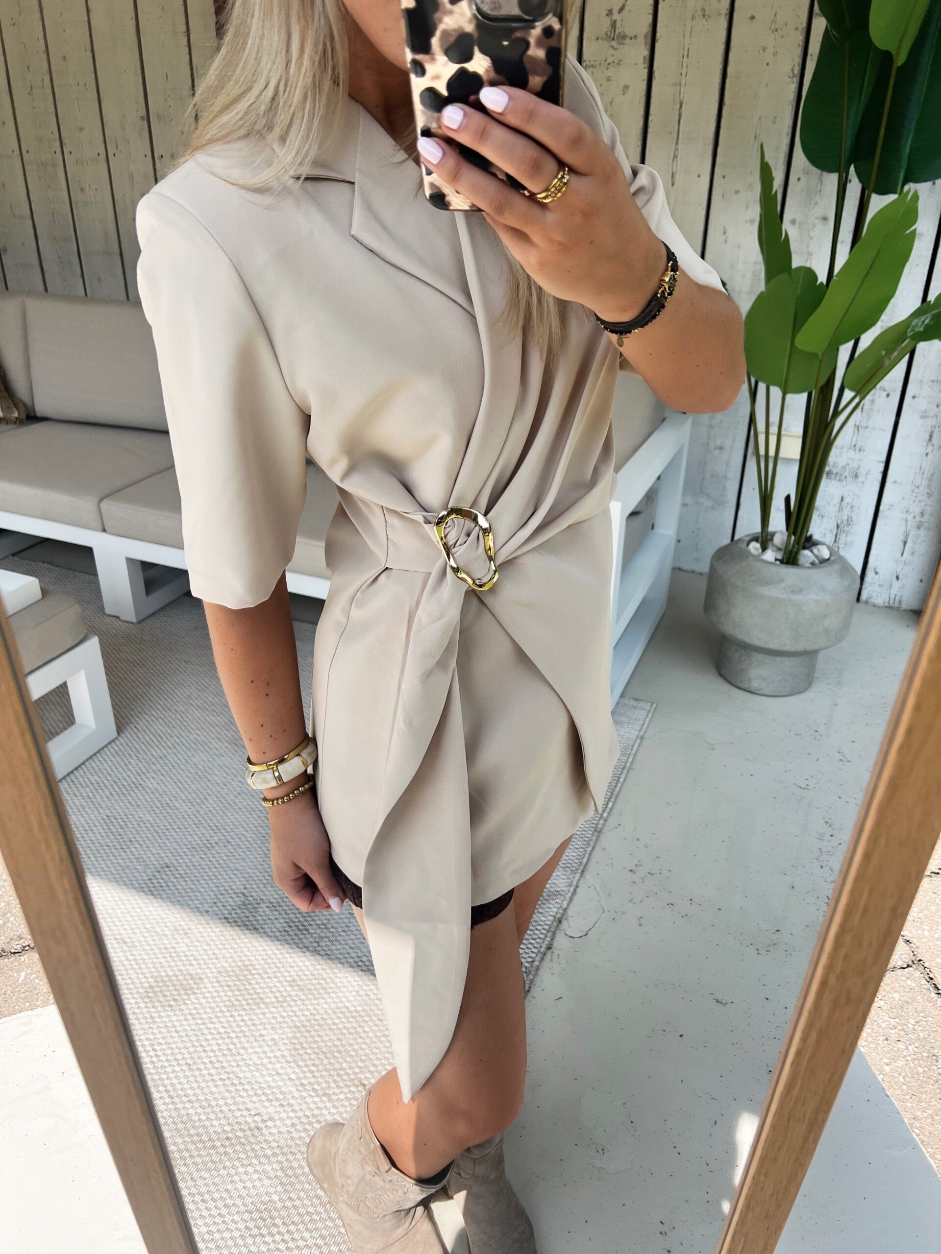 We hebben een prachtige nieuwe blazer binnen! Het is geen jurkje of jumpsuit. Ik draag er een broekje onder. Hij valt een maat kleiner.