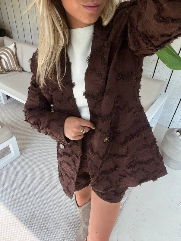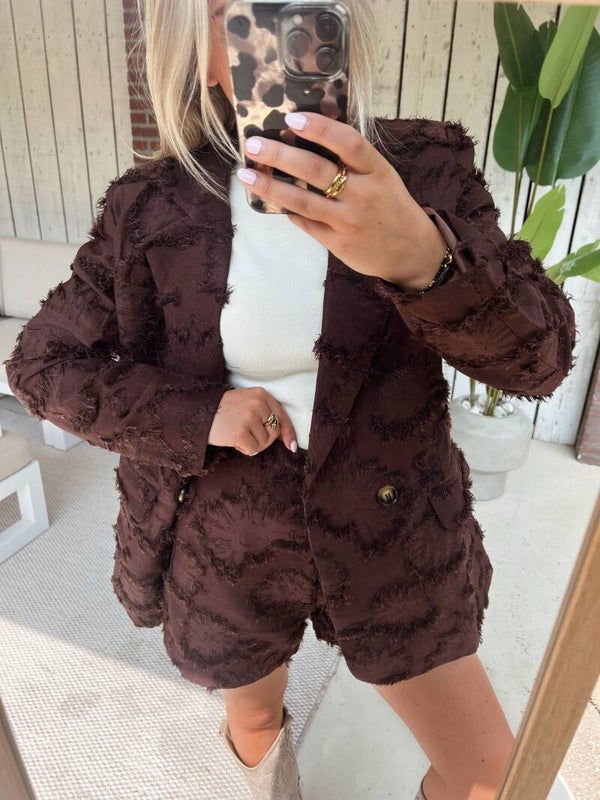 YAY! Een nieuwe bruine blazer! Deze is super leuk te combineren met het bijpassende shortje. De blazer valt iets kleiner.