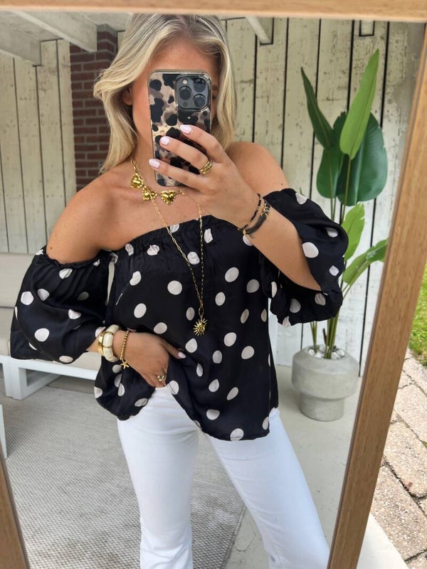 Deze top is echt een musthave dit seizoen. De stippen kunnen niet ontbreken. De top is one size en te dragen van XS tm M/L.