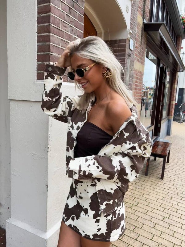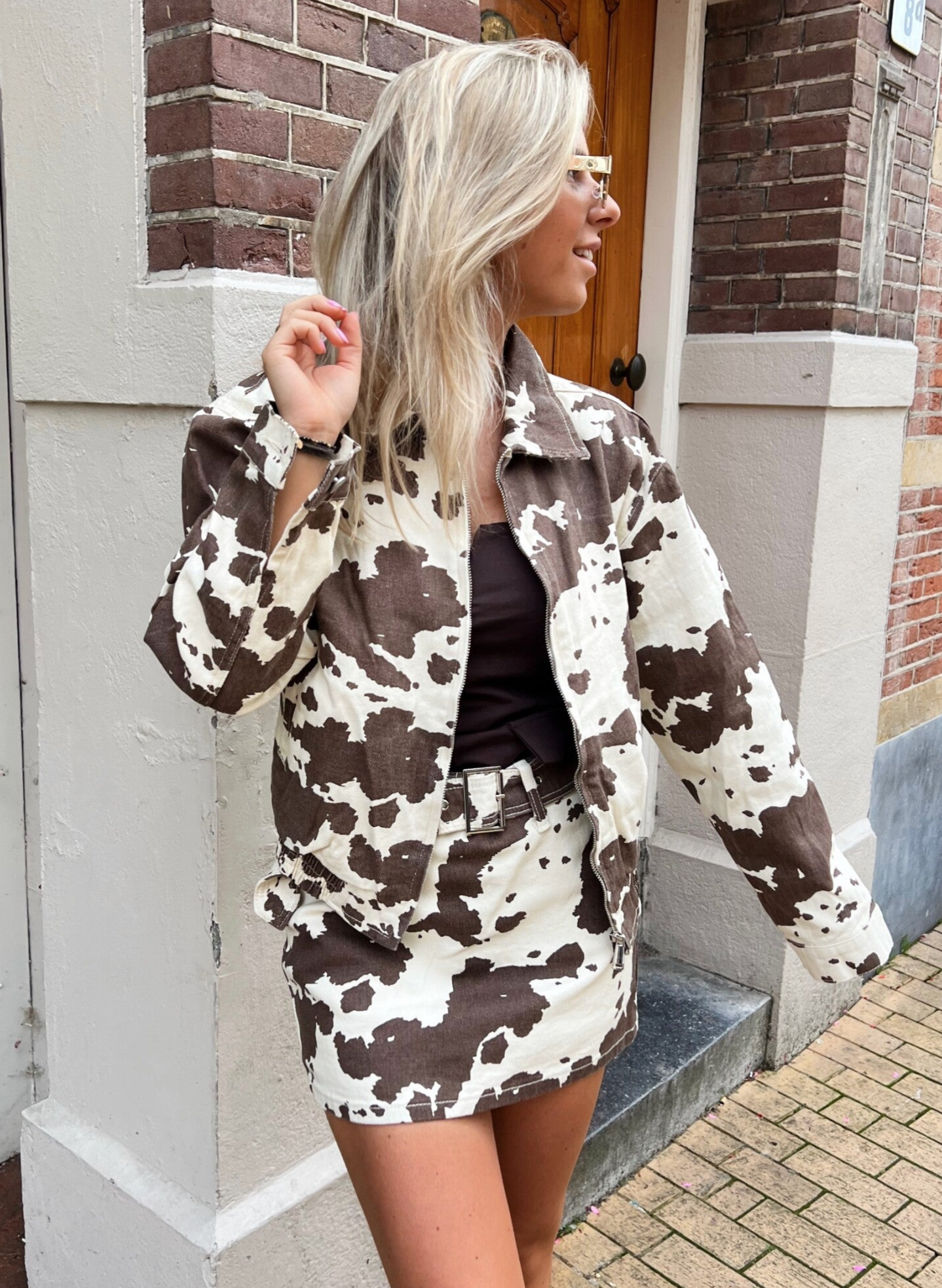 Dit geweldige jasje valt een maat kleiner. Hij is sluitbaar met een rits en heeft een bomber model. Het jasje is super leuk te combineren met het bijpassende rokje.