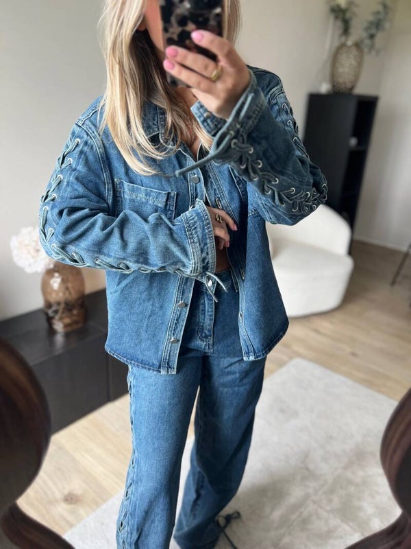 Hoe geweldig is dit jasje! Super leuk te combineren met de bijbehorende jeans. Je kunt hem los dragen of vast. Het jasje valt op maat.