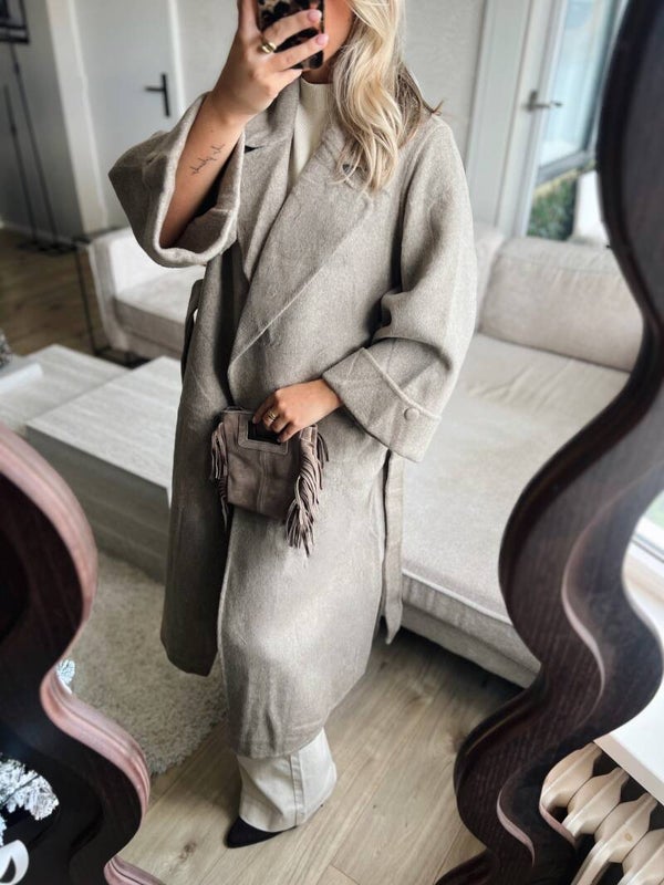 Wauw, deze jas is echt prachtig. Hij valt oversized en is one size. De mouwen zijn iets korter en wijder wat het model juist erg apart maakt. Super leuk wanneer je een outfit aan hebt met een kanten top er onder. Er zit wol in de jas maar hij kriebelt niet. Hij is daardoor van een prachtige kwaliteit. De jas is te dragen van XS tm XL.