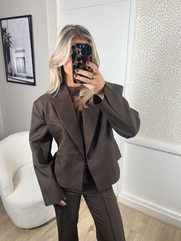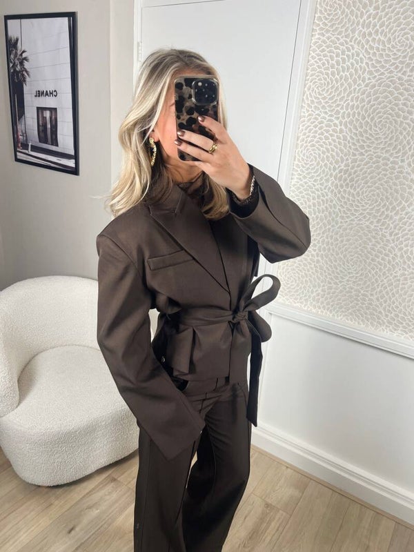 Blazer cropped ceintuur bruin Ambika
