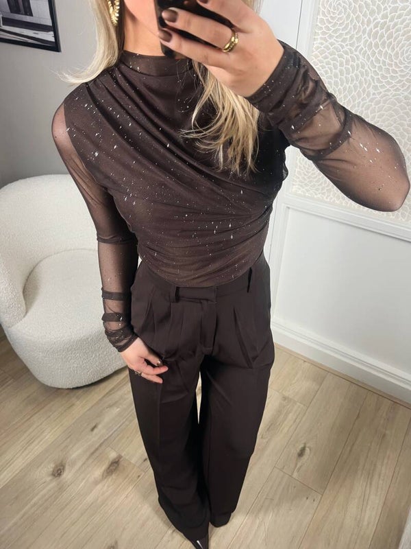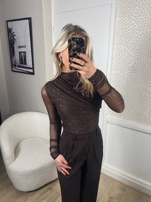 WAUW! Deze top is echt een musthave deze feestdagen. Je kunt hem namelijk op verschillende manieren dragen. Super leuk bij een pantalon of onder een blazer. De top is gevoerd. De top is one size en te dragen van XS tm M.