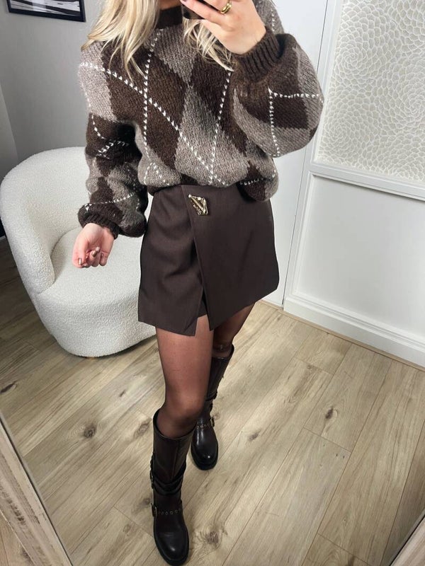 Deze heerlijke trui is super zacht en kriebelt niet. Super leuk bij een skort of pantalon. De trui is one size en is te dragen van XS tm L.