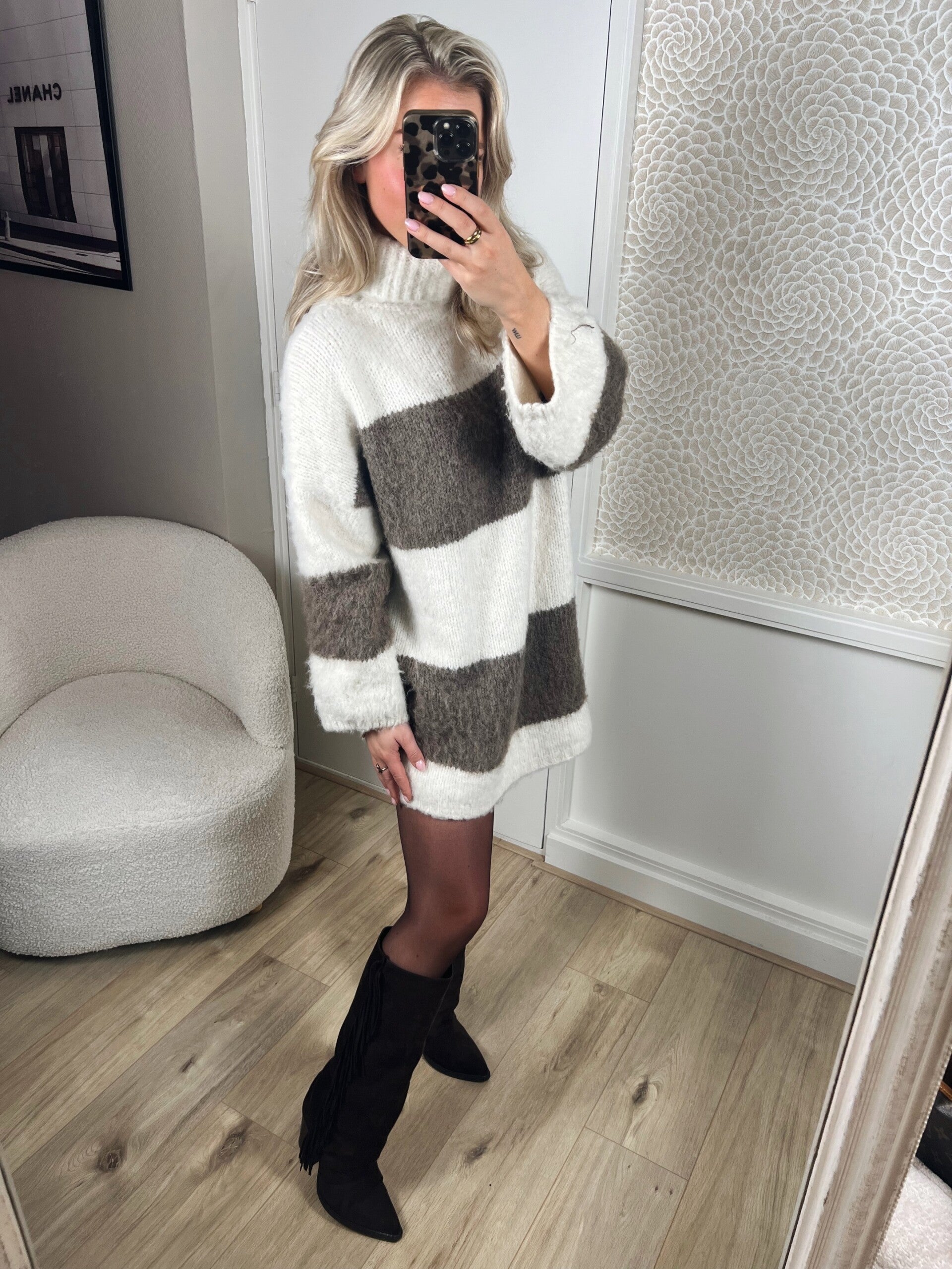 Deze heerlijke trui jurk is super zacht en comfortabel. Je kunt hem als jurk dragen maar ook gewoon als trui. De trui is one size en is te dragen van XS tm XL.