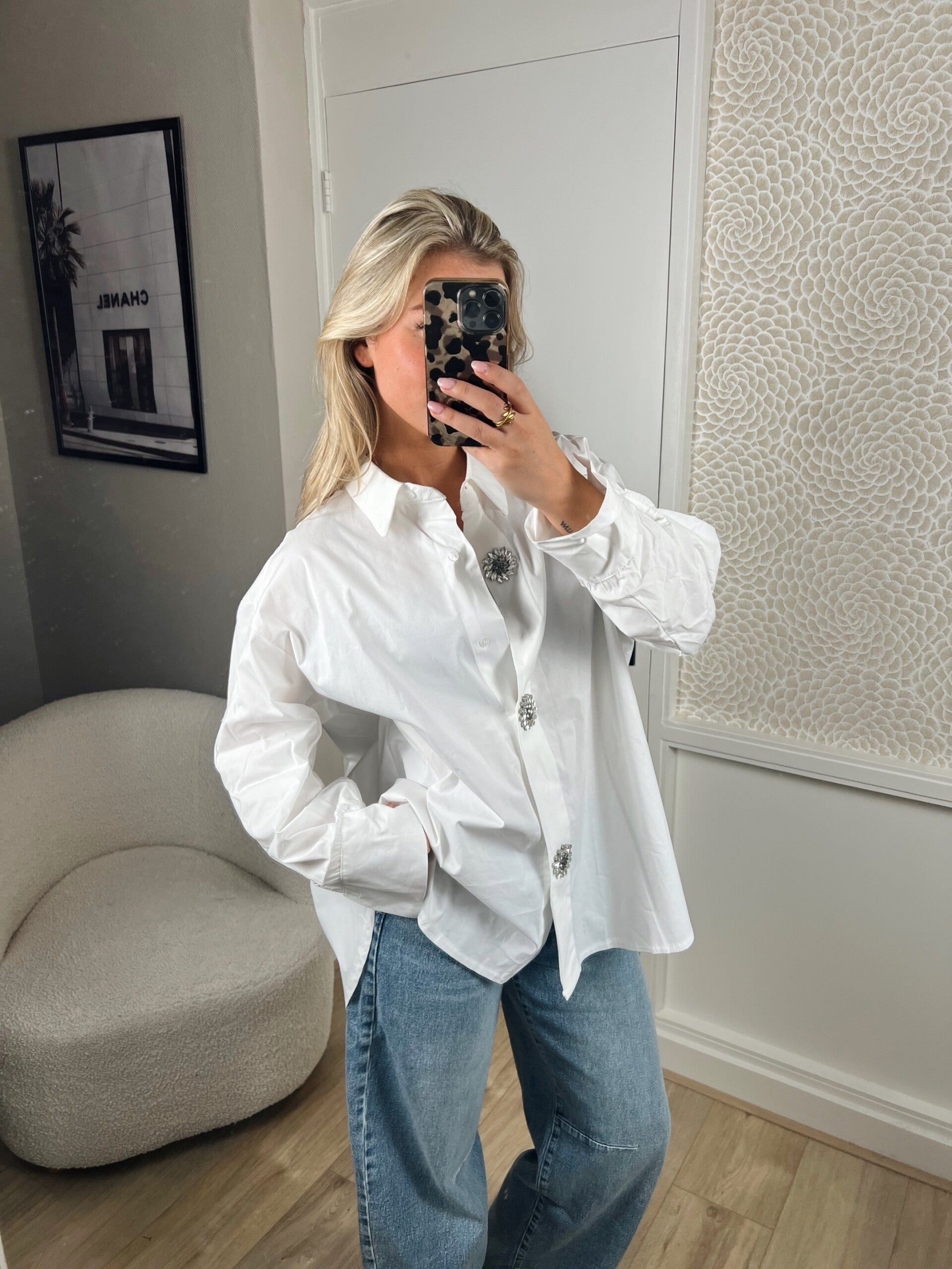 Deze super leuke blouse is oversized en is te dragen van XS tm XL. Hij is super leuk bij onze nieuwe barrel jeans, maar ook natuurlijk bij andere kleuren.