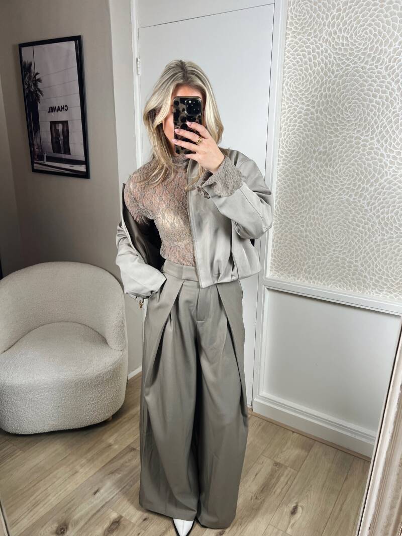De kanten top is terug! Super leuk onder een blazer of een trui. Hij valt op maat en heeft een uitlopend mouwtje en een hogere hals. Er zit stretch in de stof. De top is van het merk Ambika.