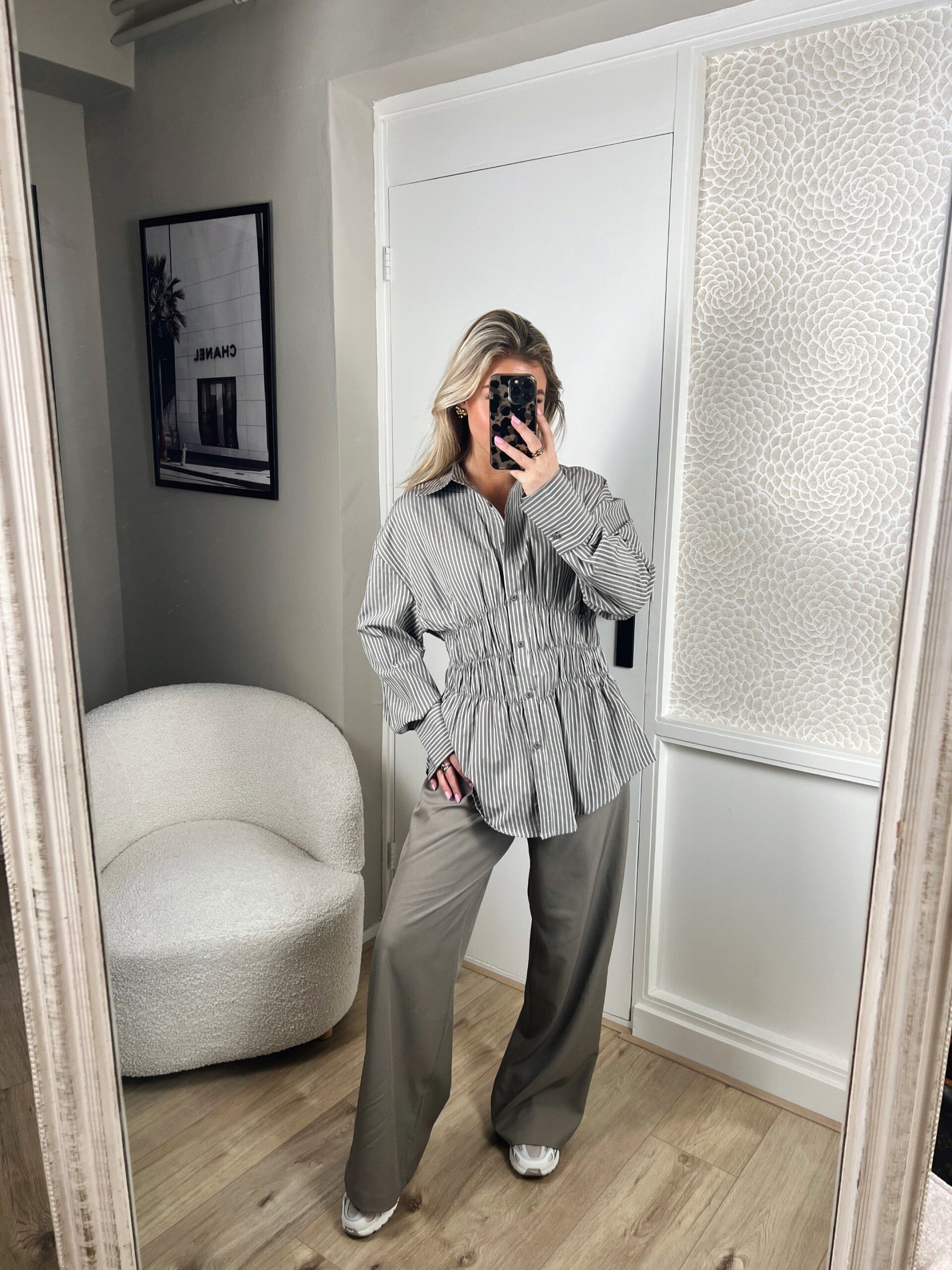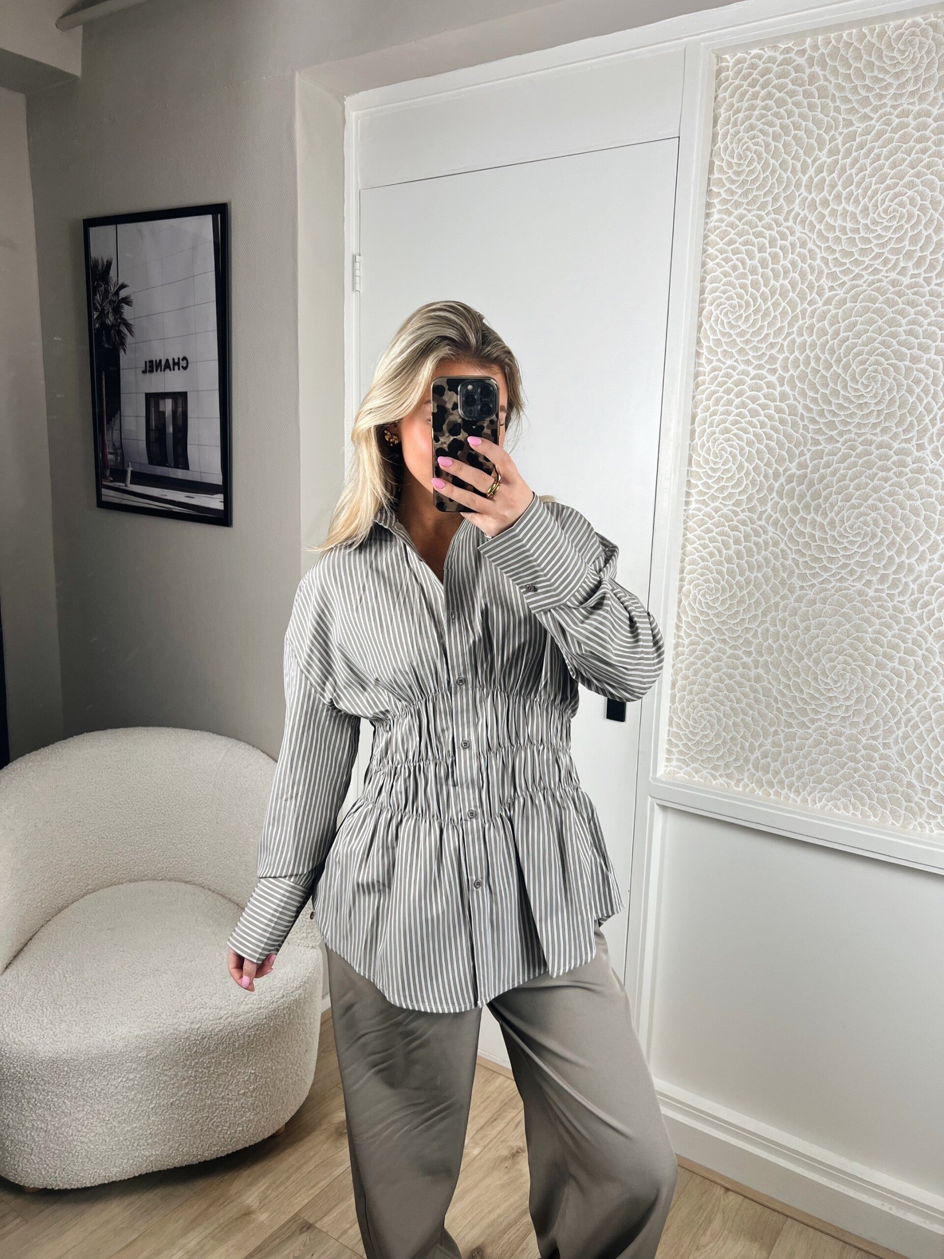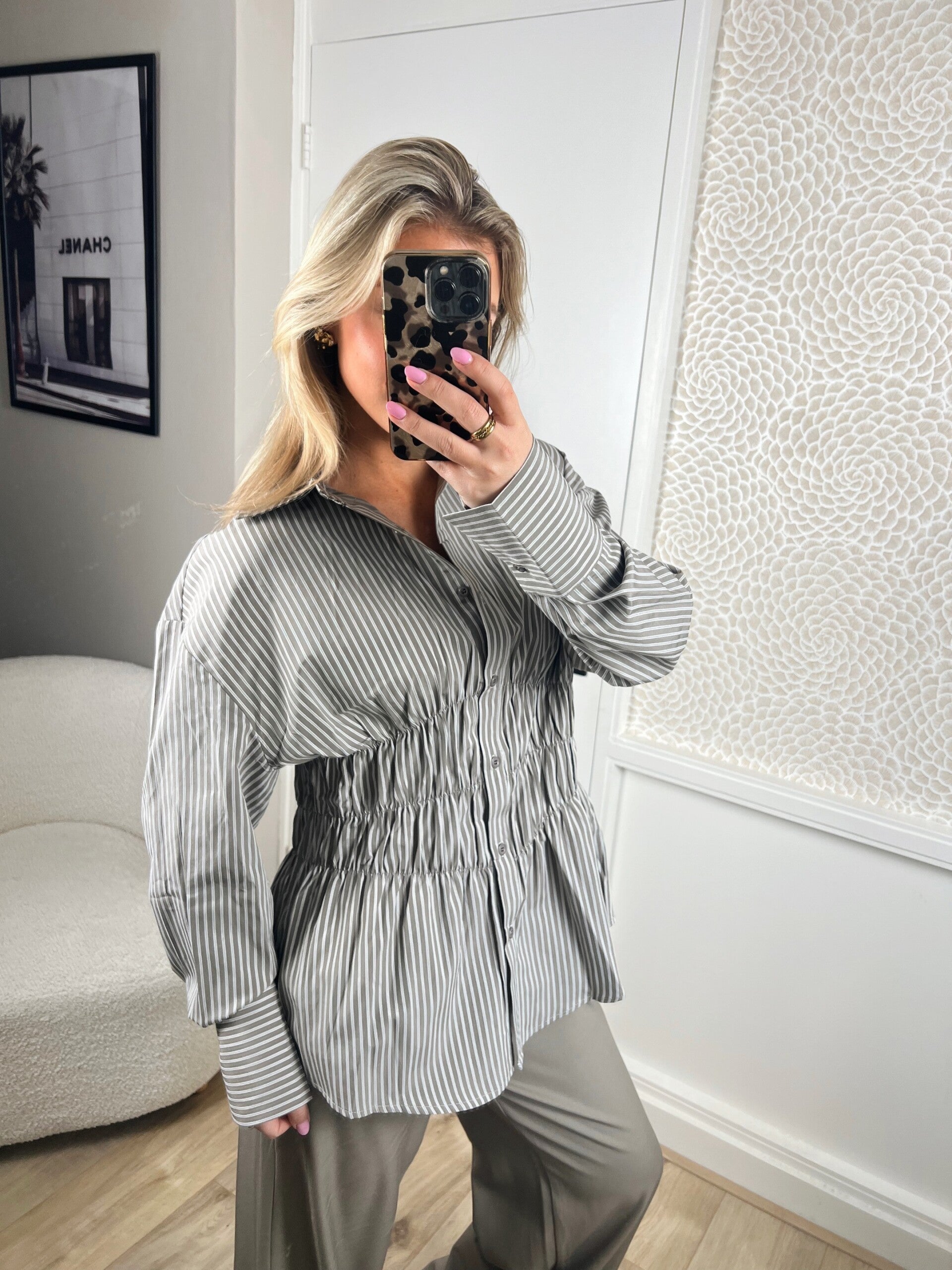 Deze super leuke blouse van Ambika heeft een prachtig model, doordat hij in de taille mooi getailleerd zit. Er zit super veel stretch in de taille. De blouse valt op maat.