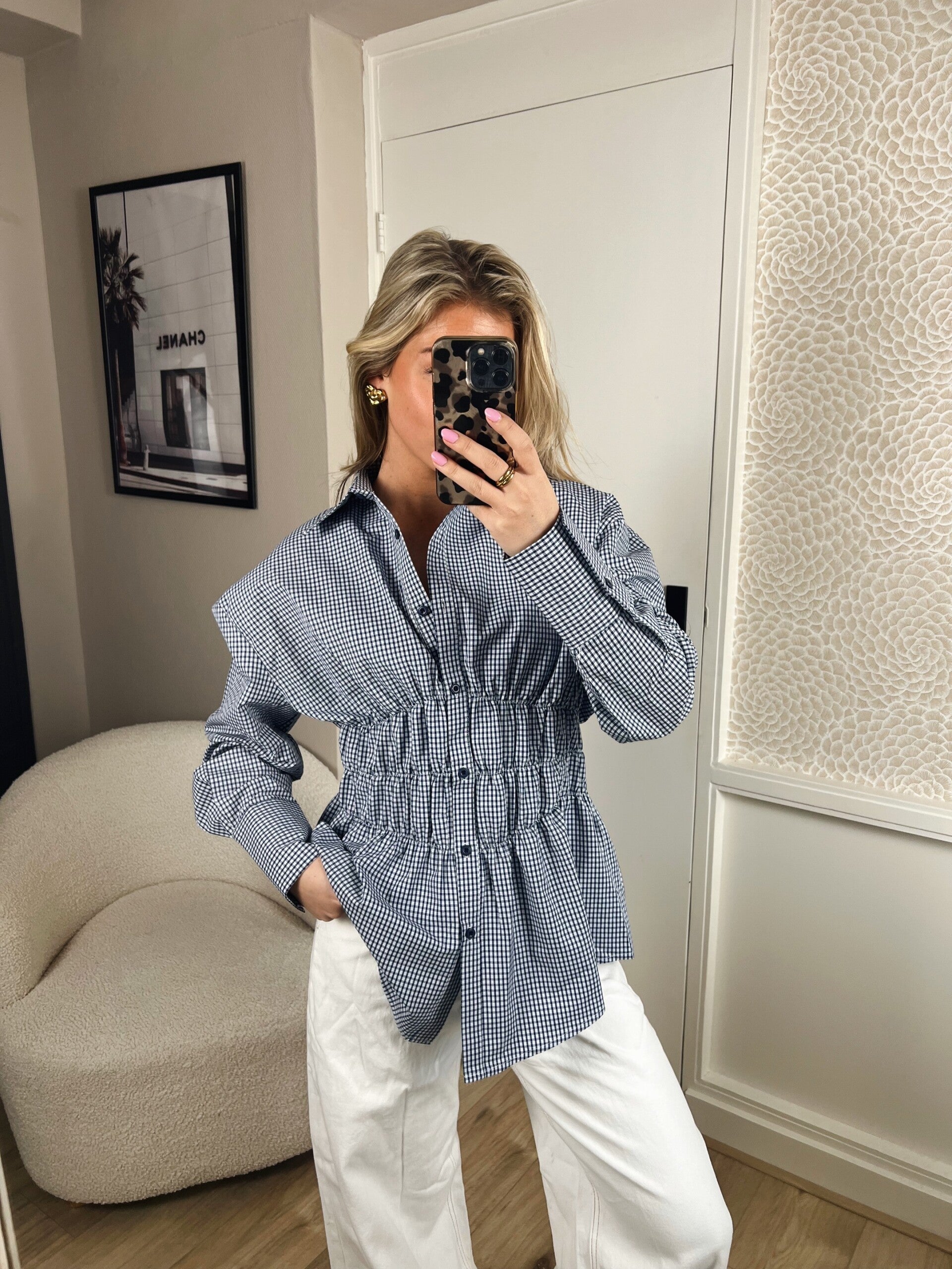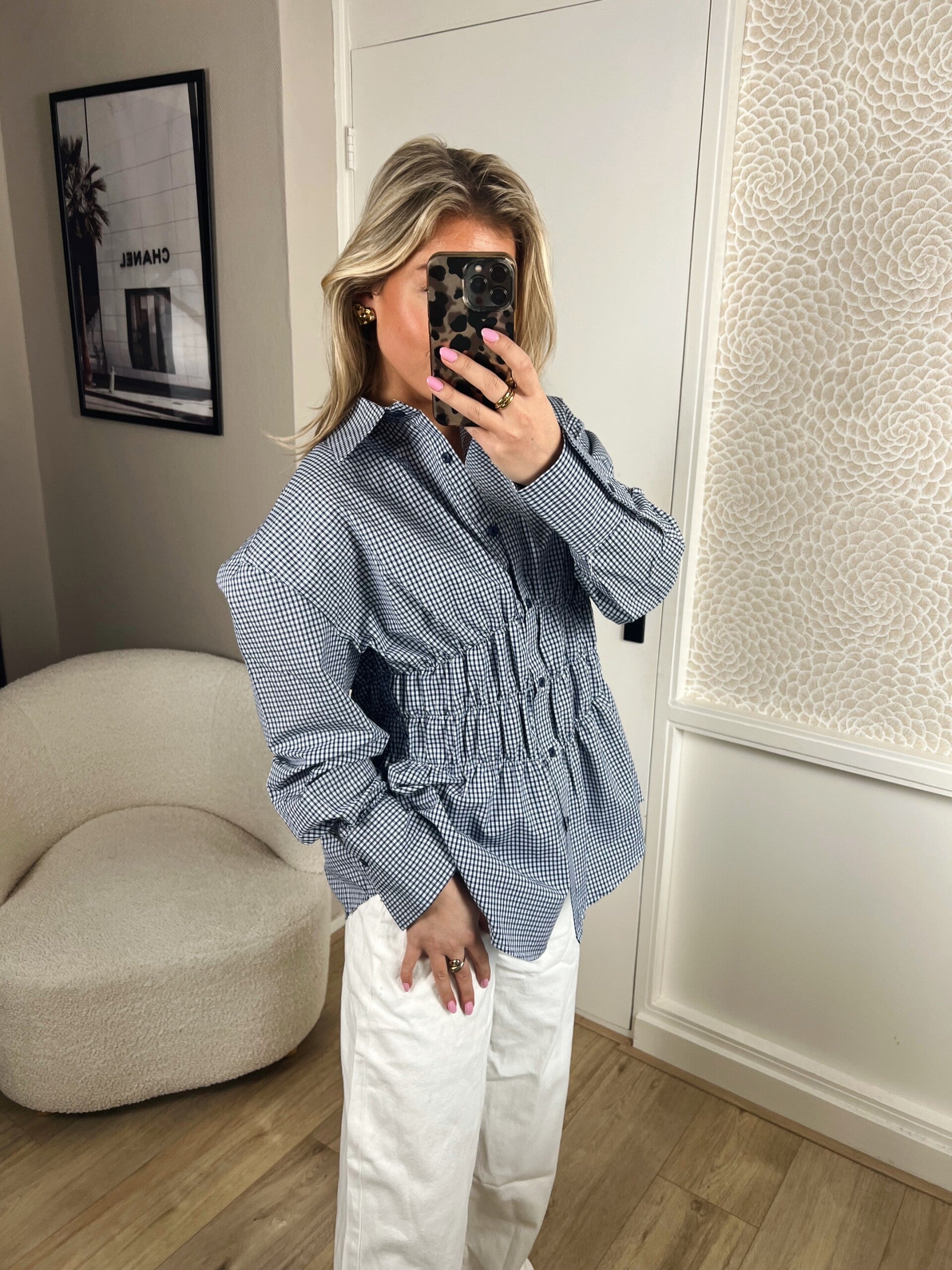 Deze super leuke blouse van Ambika heeft een prachtig model, doordat hij in de taille mooi getailleerd zit. Er zit super veel stretch in de taille. De blouse valt op maat.