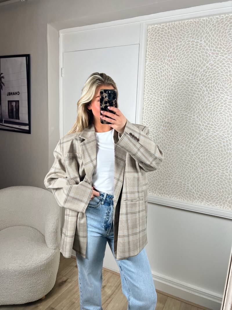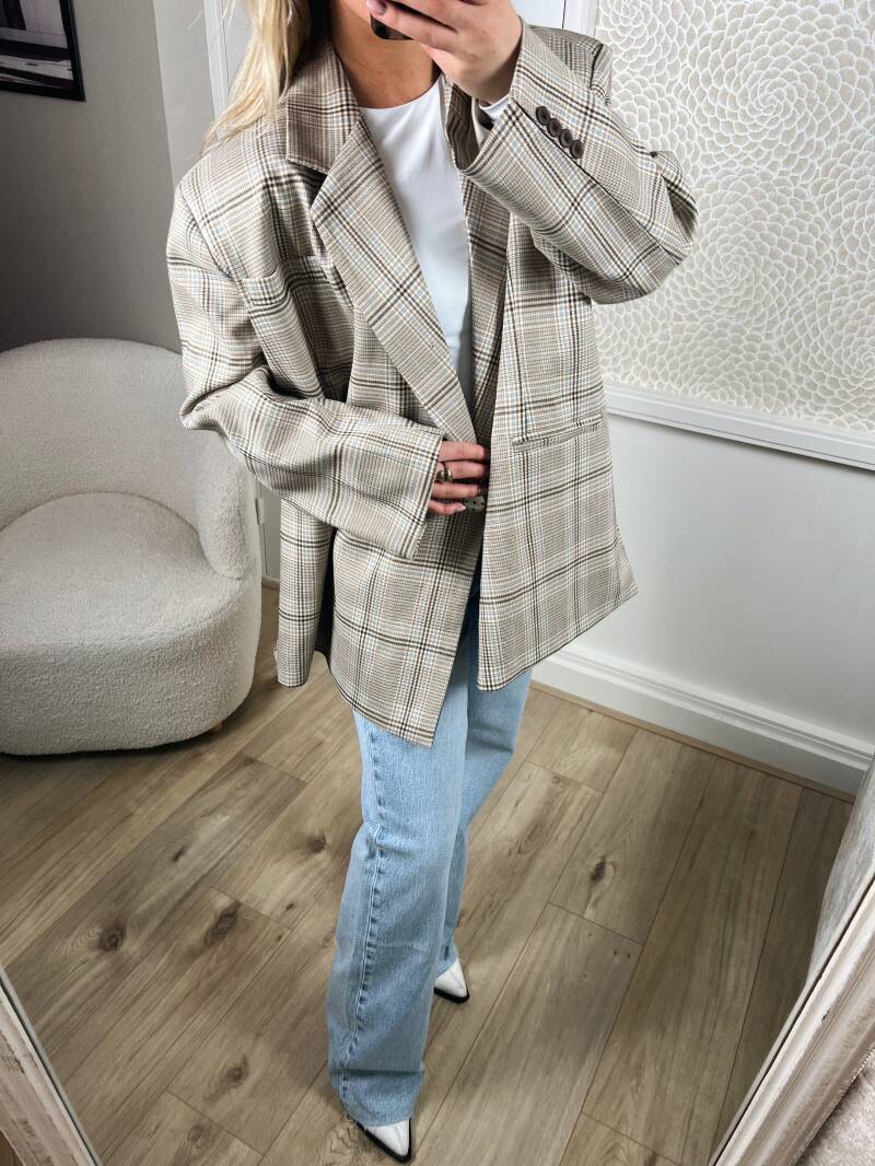 Deze geweldige vintage look overslag blazer valt oversized. Hij is one size en te dragen van S tm XL. Je kunt hem met twee druk knopen sluiten.