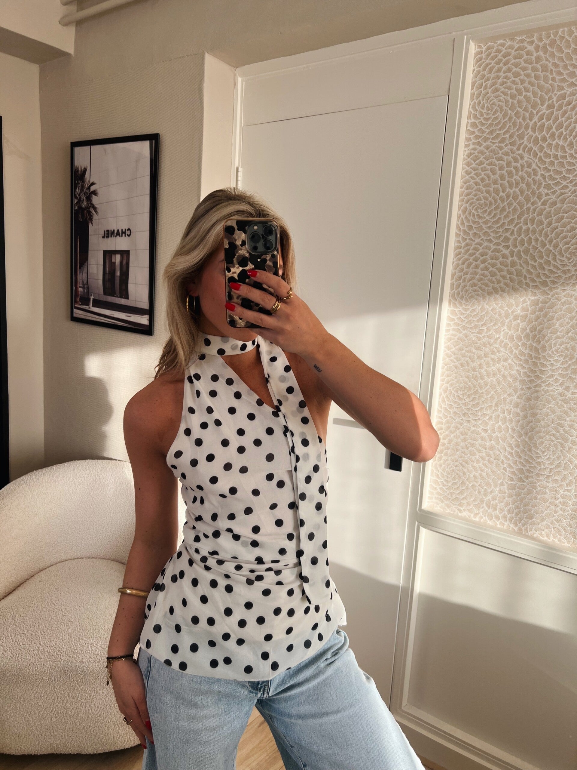 Halter top stippen wit