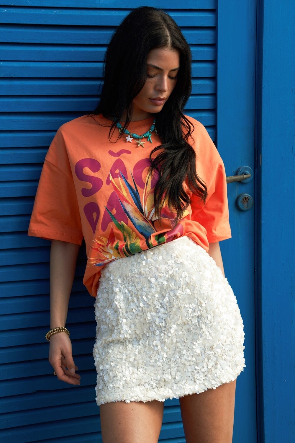 Deze mega leuke rok is echt de perfecte rok voor op vakantie of voor een avondje uit. De rok is gevoerd van de binnenkant dus je hebt geen last van de pailletten. De rok valt op maat.