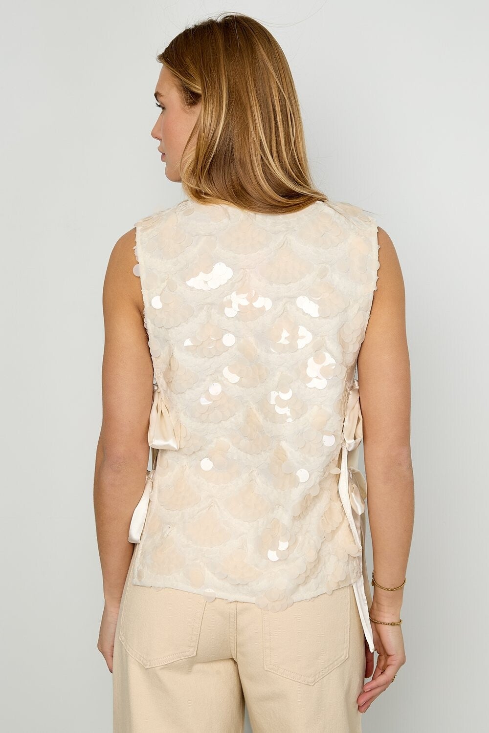 Deze super schattige top kun je heel mooi getailleerd maken door de strikken aan de zijkant. Zo kun je zelf bepalen of je hem wijd of juist strakker wilt dragen. Je kunt de top ook heel leuk bij een broek of rokje in doen, met de strikken aan de buitenkant. De top valt op maat.