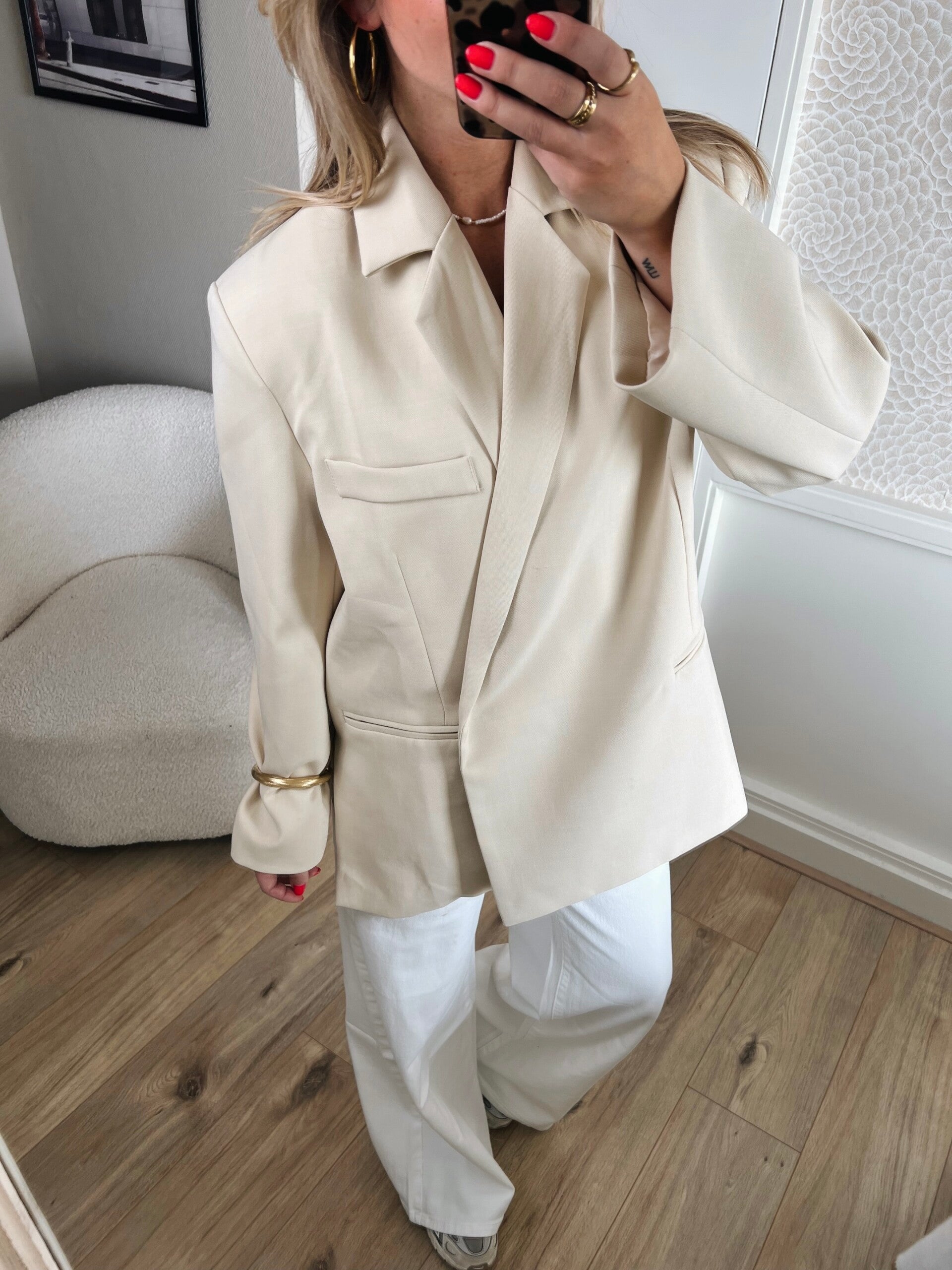 Ben jij nog naar opzoek naar dé perfecte beige blazer? Dan is dit hem! Hij heeft een knoopsluiting aan de binnen en buitenkant. Het is een prachtige beige kleur. De blazer valt op maat.