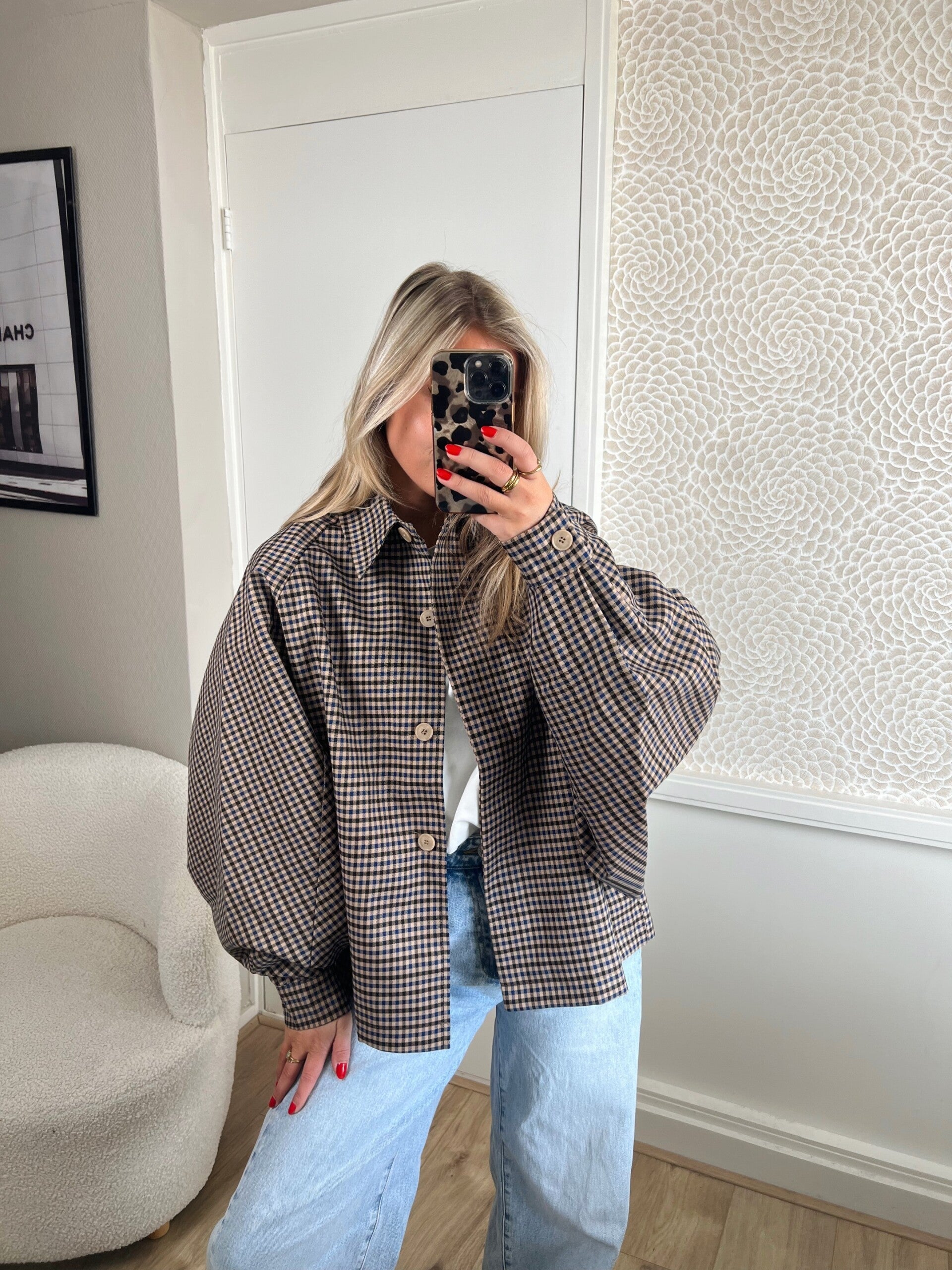 Dit super leuke jasje heeft een oversized model, met vleermuis achtige mouwen. Ook heeft hij een stormflap in de vorm van een V op de achterkant. Super leuke details. De jas is one size en te dragen van XS tm XL.